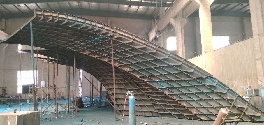 全鋼異型空間拱殼模板施工現(xiàn)場(chǎng)